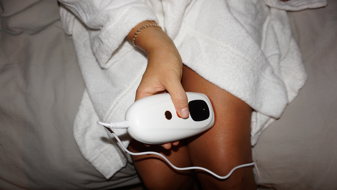 Turn on the device, select your comfort level, place it flat against your skin, and press the button to release the light pulse.